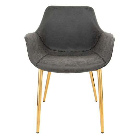 Markley Modern Leather Dining Arm Chair With Gold Metal Legs Set of 2