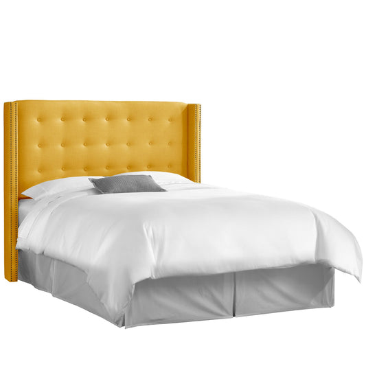 Cadence Linen French Yellow Nail Button Tufted Wingback King Headboard