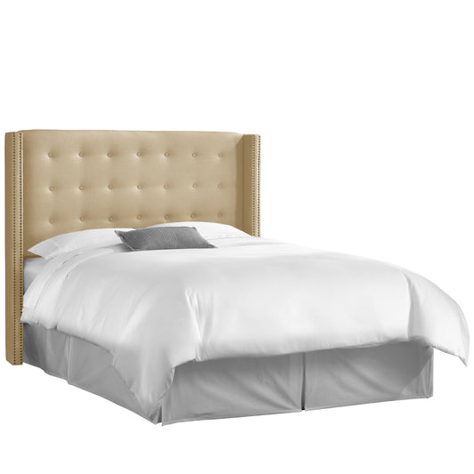 Morgan Linen Sandstone Nail Button Tufted Wingback California King Headboard