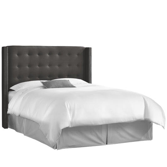 Lorelei Linen Charcoal Nail Button Tufted Wingback California King Headboard