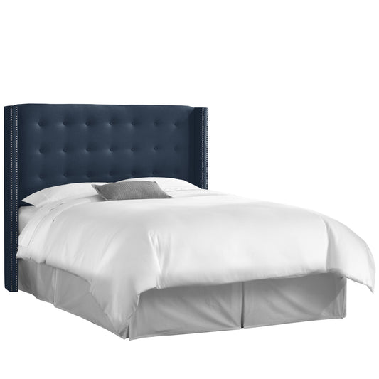 Lilith Linen Navy Nail Button Tufted Wingback California King Headboard