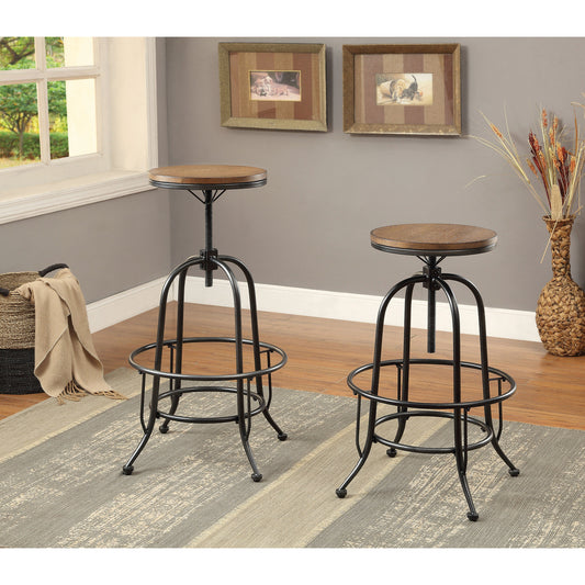 Nestor I Industrial Swivel Bar Stool (Set of 2) in Medium Oak