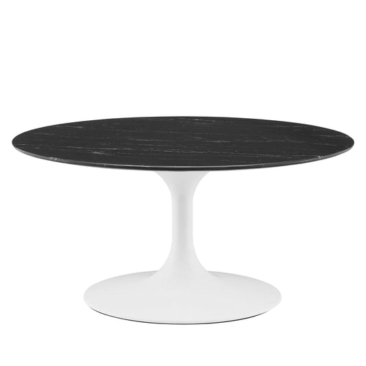 Tulip Style 36" Black Artificial Marble Coffee Table