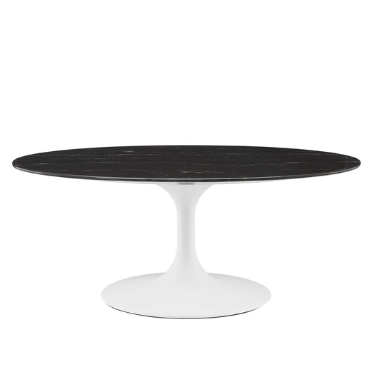 Tulip Style 42" Black Oval Artificial Marble Coffee Table