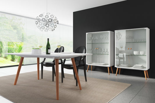 Sharon White Satin Cabinet with glass doors