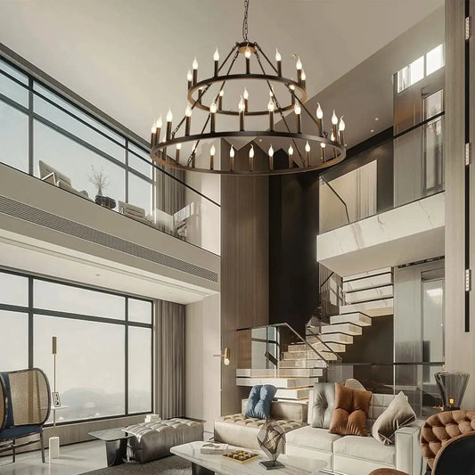 Rustic 48-inch 2 Tier Wagon Wheel Chandelier