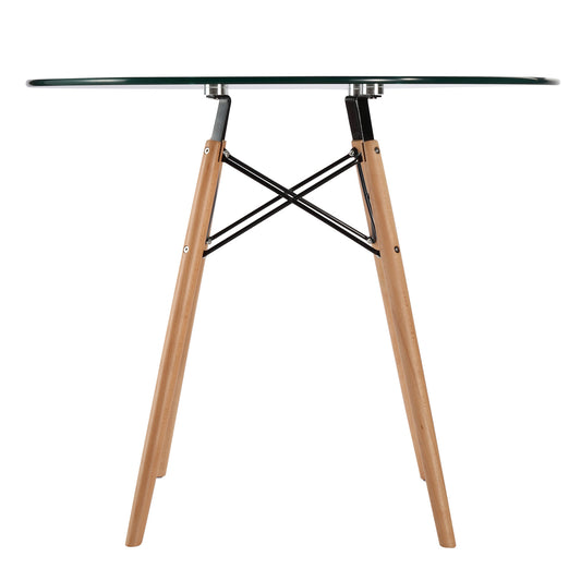 Emfurn Eiffel Style 36" Glass Top Dining Table with Natural Legs