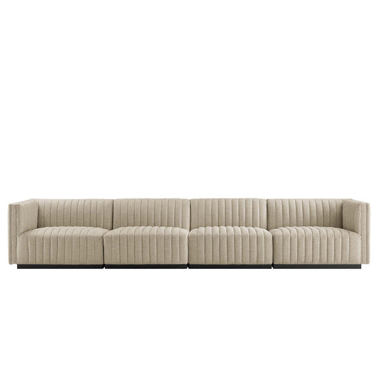 Conjure Channel Tufted Upholstered Fabric 4-Piece Sofa