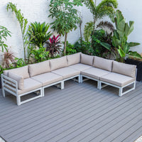 Set up a spot for Fresh air, chilled drinks & warm breezes, whether you're looking to host the neighbors in style or just spread out to enjoy warmer weather there's no better way to extend your living space than with our Chelsea modern outdoor sectional set. We have a professional outdoor design team, focusing on the design of high-quality and weather resistance outdoor sectional sets. The solid structure frame ensures stability and the cushions come with ties lock the cushions for placement where you want them. Sitting enough for six people Shape the sectional in the traditional U-Shape or you can shape it however you like to help you make the most out of your patio or deck.