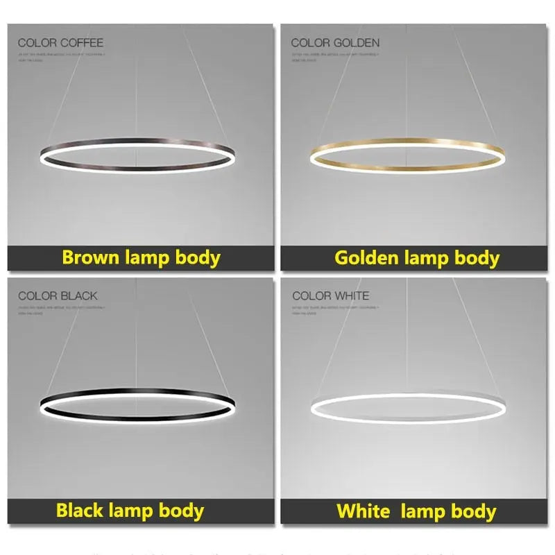 This is New Classic product in 2026. Modern Ring Pendant Light Black/Gold/Brown with Remote Control combines technological convenience with aesthetic sophistication. The pendant features interlocking rings in varying hues—black, gold, or brown—that house embedded LED lights. With the accompanying remote control, adjust the brightness levels and even the color temperature to suit your mood or occasion. This versatility makes the fixture not just a source of light but an interactive element of your home decor. Easy to install and co