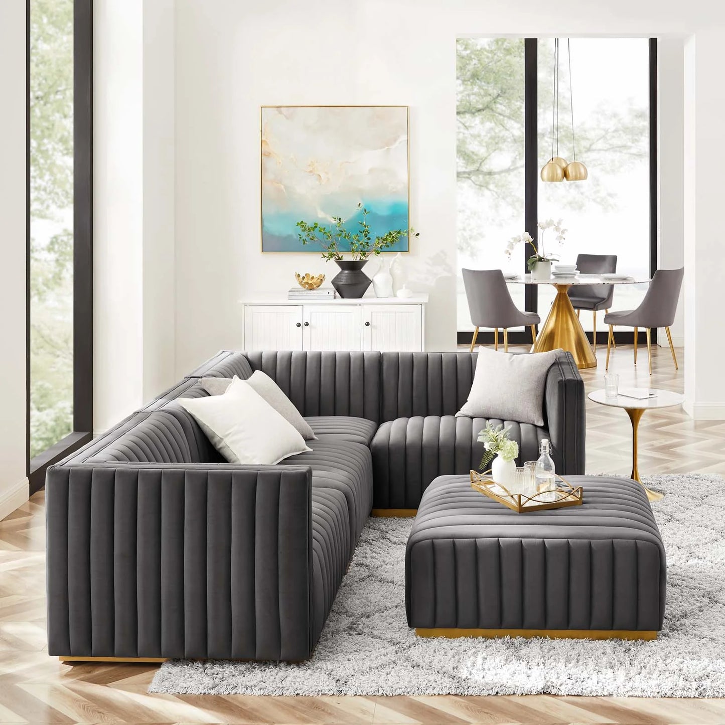 Conjure Channel Tufted Performance Velvet 5-Piece Sectional