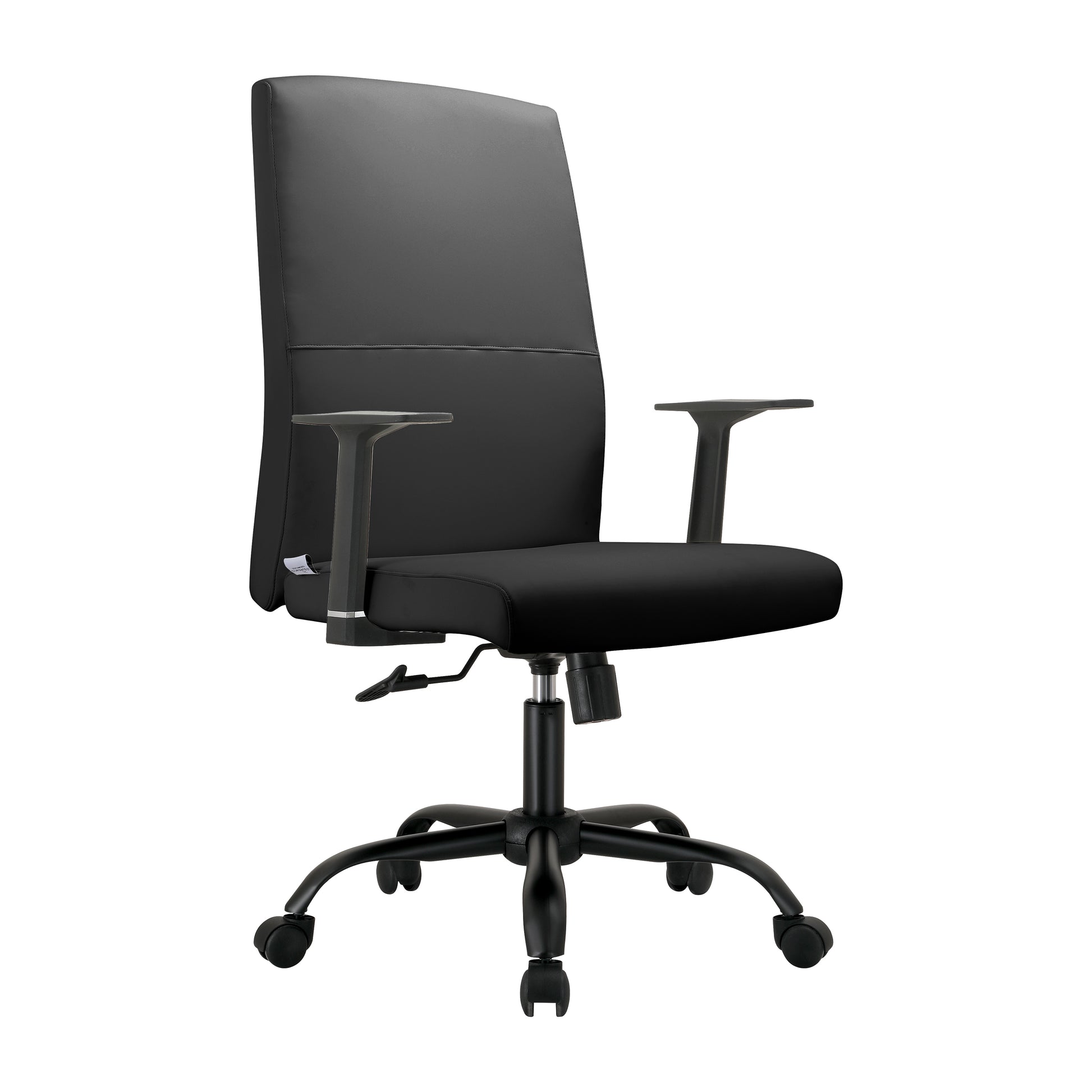 The office chair's faux leather covering not only elevates its aesthetics but also provides a comfortable seating experience.
