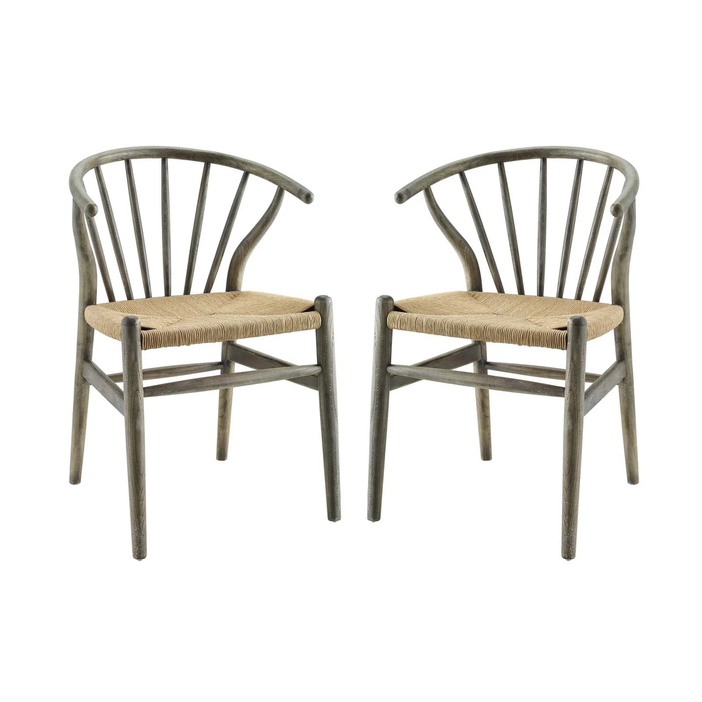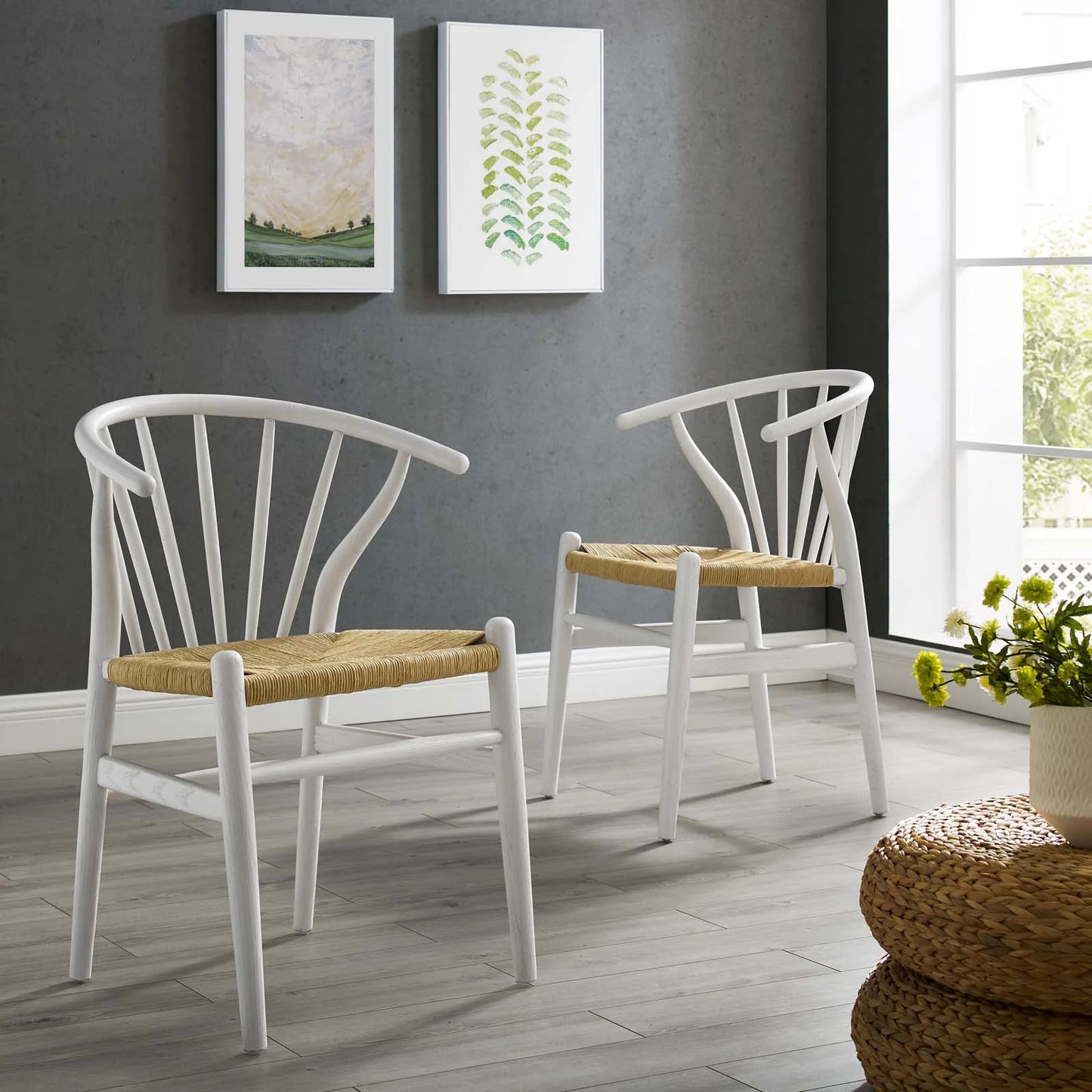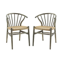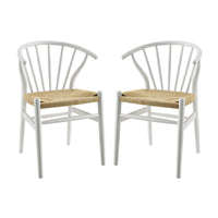 • Bring Scandinavian style to your dining space with the Flourish Dining Side Chair Set of 2. Featuring a sweeping curved back, tapered wood legs, and classic spindles, the modern farmhouse design of this dining chair gets a contemporary update with delicate craftsmanship and stylish detail. The seat is made of paper rope, a new twine that is soft, anti-static and durable, while providing beautiful contrast and a soft texture. Complete with a solid wood frame and support rods make this piece a lasting choice for the dining room, kitchen table, or living area. Complement a variety of décor settings from mid-century to contemporary modern with this wood dining chair set. Weight Capacity: 286 lbs
