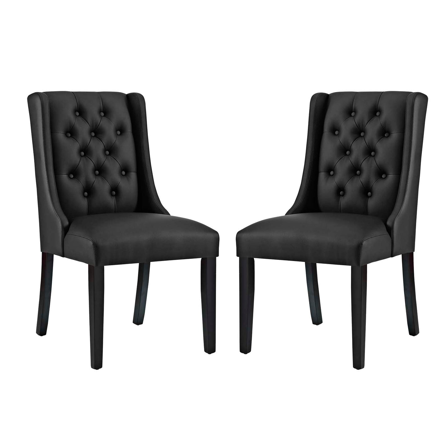 Bestow splendor with Baronet. Charm and elegance adorn this luxurious button tufted dining chair complete with sleek curves and dignified form. Featuring dense foam padding, fine vinyl upholstery, a solid wood frame, and non-marking foot glides, Baronet is a stylish dining chair perfect for the modern home.