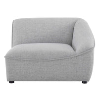 Indulge in cozy relaxation in the comfort of your own home with the Comprise Upholstered Right-Arm Sectional Sofa Chair. A casual design accented with French piping details, this sectional sofa piece features dense foam padding, soft polyester upholstery and a pocket coil spring system to offer a premium seating experience. Solidly constructed with solid wood and plywood, this upholstered sectional sofa collection rests atop sturdy rubberwood legs with secure connectors between modular pieces. Create a custom living room or lounge area with the Comprise Living Room Furniture Collection. Chair Weight Capacity: 400 lbs.