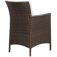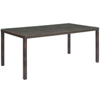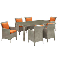 Refresh your alfresco space with the Conduit 7 Piece Outdoor Patio Dining Set. Bringing transitional style with contemporary modern flair to any outdoor area, Conduit Armchairs feature a powder-coated aluminum frame wrapped in synthetic UV-resistant wicker rattan. Foam padded cushion and waterproof cover offer a comfortable seat while dining or entertaining. The Conduit 70" Dining Table features a tempered glass tabletop provides a smooth, easy-to-clean surface ideal for dining and entertaining. All-weather and long lasting, this versatile outdoor dining set creates a serene setting for your morning tea, sunny lunch, sunset meal, and everything in between.