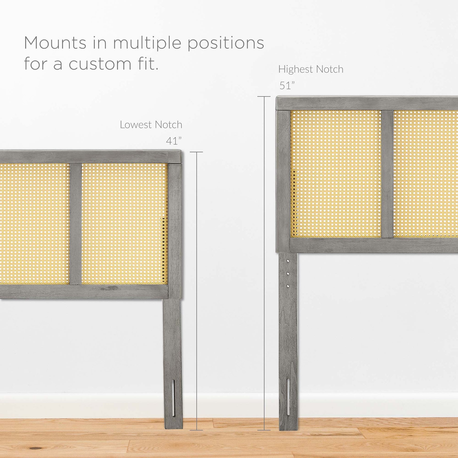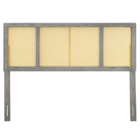 Inspiring the air of the tropics and peaceful scenery in a guest bedroom, teenager's room, or kid's bedroom with the Delmare Cane Woven Rattan Full Headboard. Bringing an airy, organic aesthetic to the bedroom, this full size headboard combines mid-century modernity and tropical style with its beautiful cane pattern and natural wood frame. Adapting to almost any decor theme with the option of interchangeable bed frames, this full size headboard is compatible with the Billie and Margo bed frame collections for a customized look that's easily interchangeable. This headboard for full beds features a linear design along the meticulous rattan weave and is crafted with solid rubberwood for lasting durability. Refresh your bedroom with customizable bedroom furniture. Assembly required.