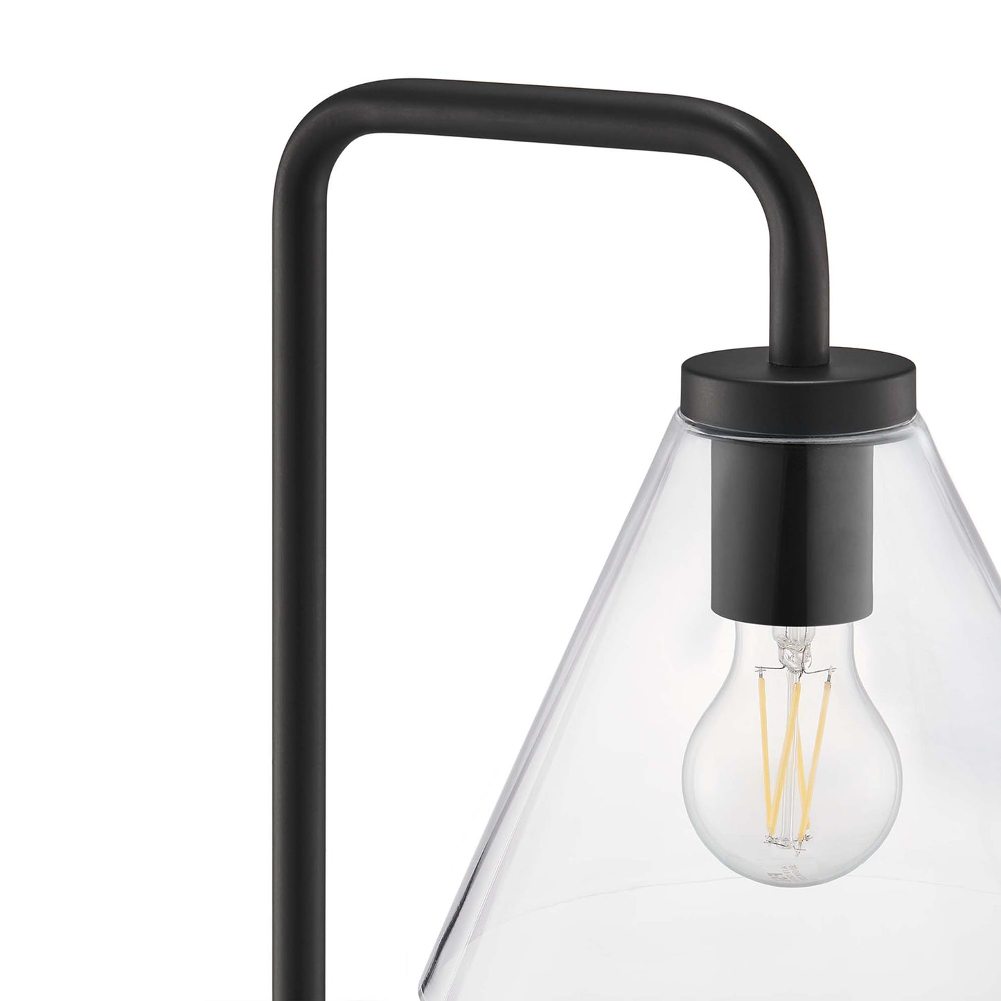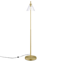The Element Glass Floor Lamp accentuates your home décor in the living room, bedroom, or study room with a distinctive mid-century modern aesthetic. Solidly constructed with a bent-pipe arm and a round iron base, this living room floor lamp beams with industrial-inspired elegance. The Element Standing Floor Lamp brings architectural style into mid-century modern, contemporary, or eclectic settings, featuring a transparent glass cone shade. This tall floor lamp for living rooms is equipped with a black power cord and a convenient on/off foot switch. A dimmable standing lamp, Element requires 1 E26 60W max bulb or LED equivalent (not included). Compatible with dimmer switches (not included). Assembly required. Clean with a soft, damp cloth.