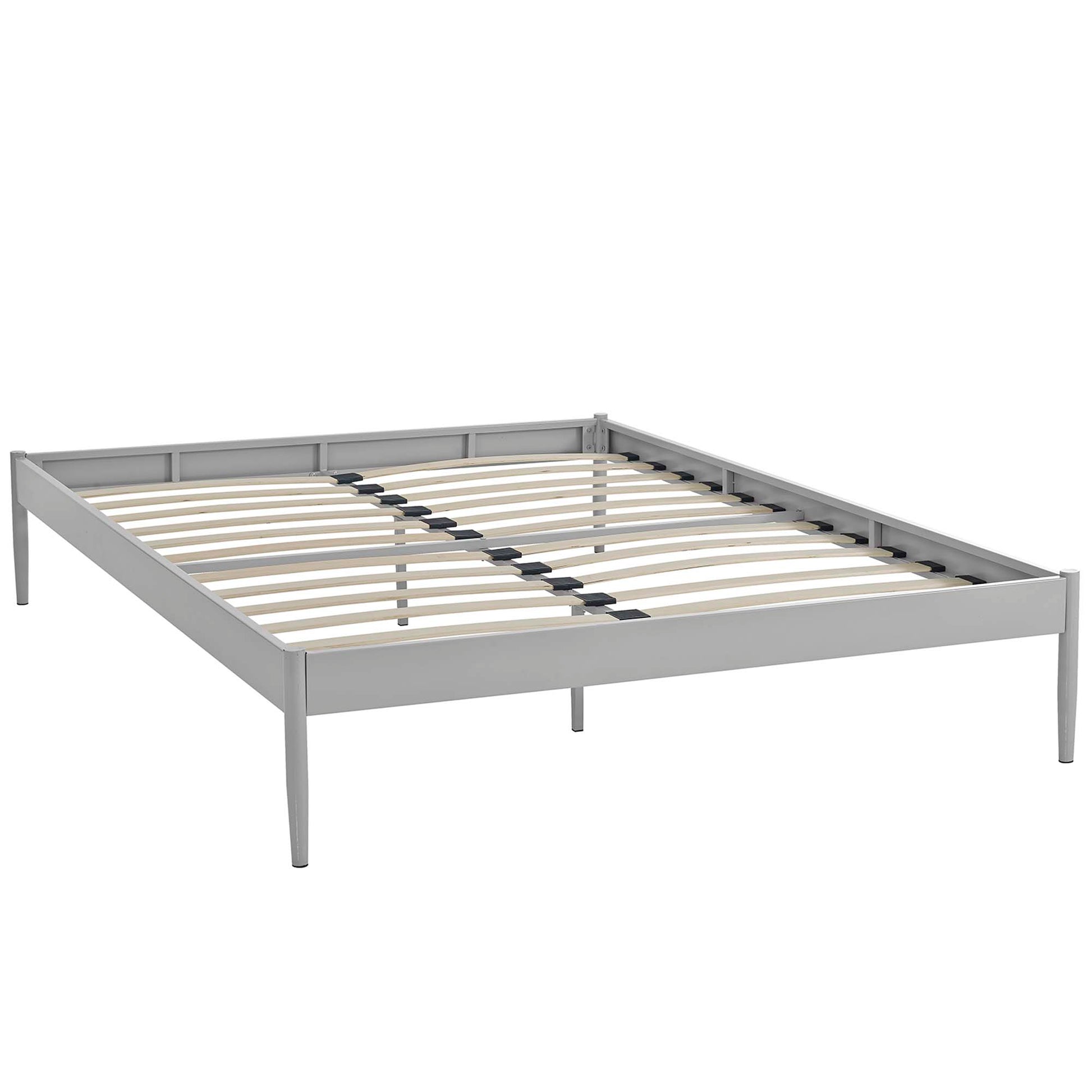 Resolve bedroom conundrums with the Elsie Bed Frame. With a slatted birchwood support system and sturdy steel frame, Elsie eliminates the need for a boxspring and firmly supports the various mattress types on the market such as memory foam, spring, latex, and hybrid. Featuring tapered dowel legs with non-marking foot caps, and a reinforced center beam with extra support legs, Elsie is a well-made, durable bed built to last. Elsie holds a weight capacity of up to 1300 lbs and showcases a sleek, minimalist design perfect for the modern home. Mattress Not Included.