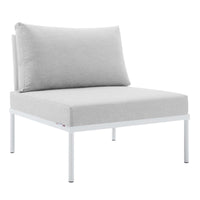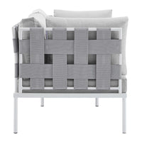 Engage life with Harmony. Enjoy casual conversation under the open sky with an all-weather waterproof furniture set that delivers an exceptional outdoor porch, patio, balcony or garden experience. An exceptional modern furniture set that exceeds expectations, Harmony comes with long-lasting machine washable Sunbrella® fabric cushions, soft and durable polyester Textiline® panels, square powder coated aluminum bases, tempered glass top tables, and non-marking foot caps. A sectional that arranges according to the spontaneous needs of your guests, set your sights on open and inspired moments with the Harmony Outdoor Patio Collection. Set Includes: 1 Loveseat, 2 Armless Chairs, 1 Coffee Table