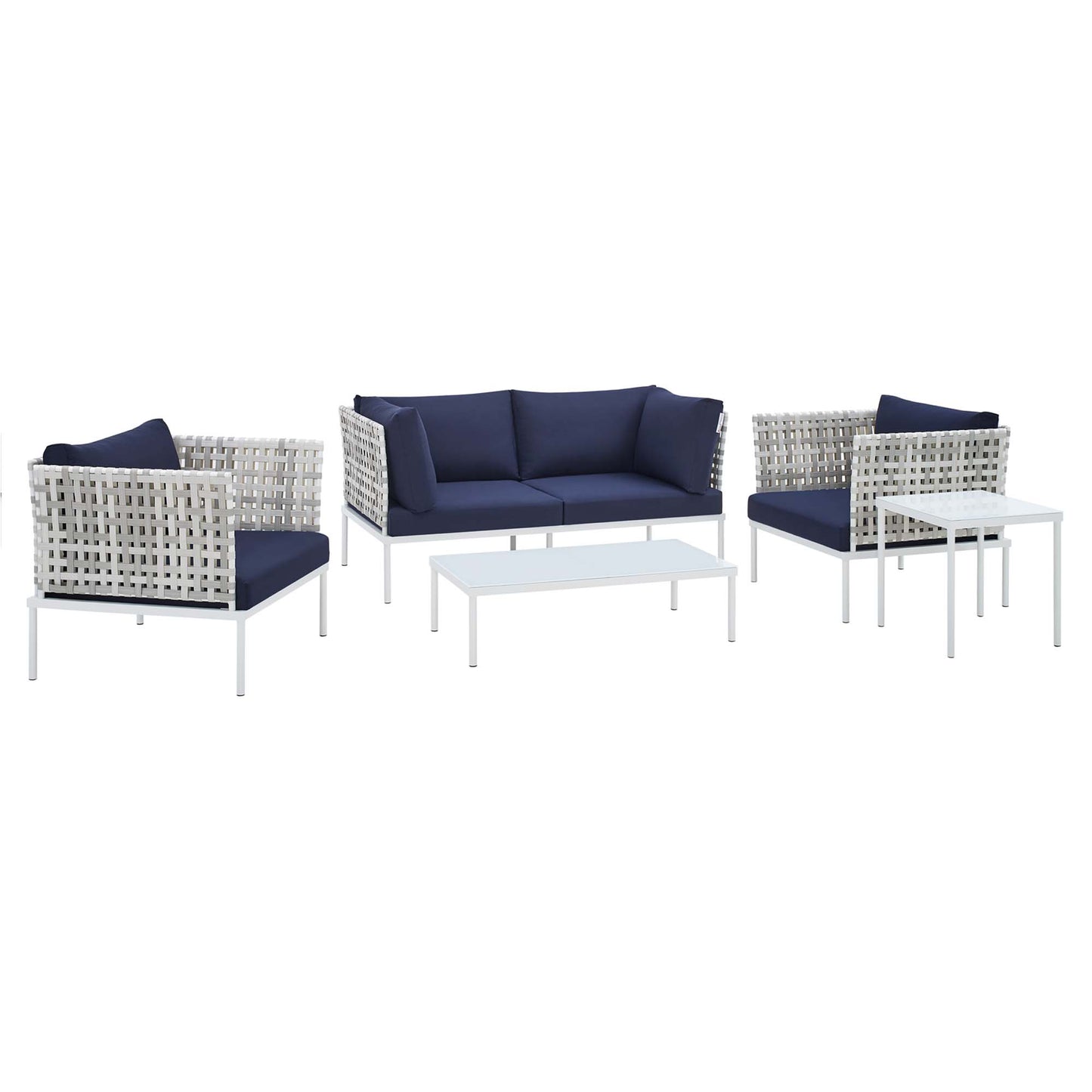Harmony 5-Piece Sunbrella® Basket Weave Outdoor Patio Aluminum Seating Set