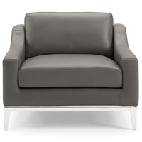 Center your space with the Harness Leather Armchair. Featuring soft leather upholstery, Harness comes with a dense foam padded seat cushion, supportive cotton-filled back pillow, a sinuous spring support system, and a polished stainless steel frame with non-marking foot caps. Perfect for the living room, bedroom or entryway, this streamlined accent lounge armchair fuses modern intrigue with timeless appeal for a sleek low-profile chair that completes the look of any vintage or contemporary modern home or apartment. Cushions remove for easy cleaning. Chair Weight Capacity: 300 lbs.