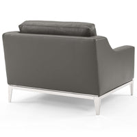 Center your space with the Harness Loveseat & Armchair Set. Featuring soft leather upholstery, Harness comes with dense foam padded seat cushions, supportive cotton-filled back pillows, a sinuous spring support system, and a polished stainless steel frame with non-marking foot caps. Perfect for the living room, meeting room or recreation area, this set fuses modern intrigue with timeless appeal for a sleek low-profile couch that completes the look of any vintage or contemporary modern home or apartment. Cushions remove for easy cleaning.