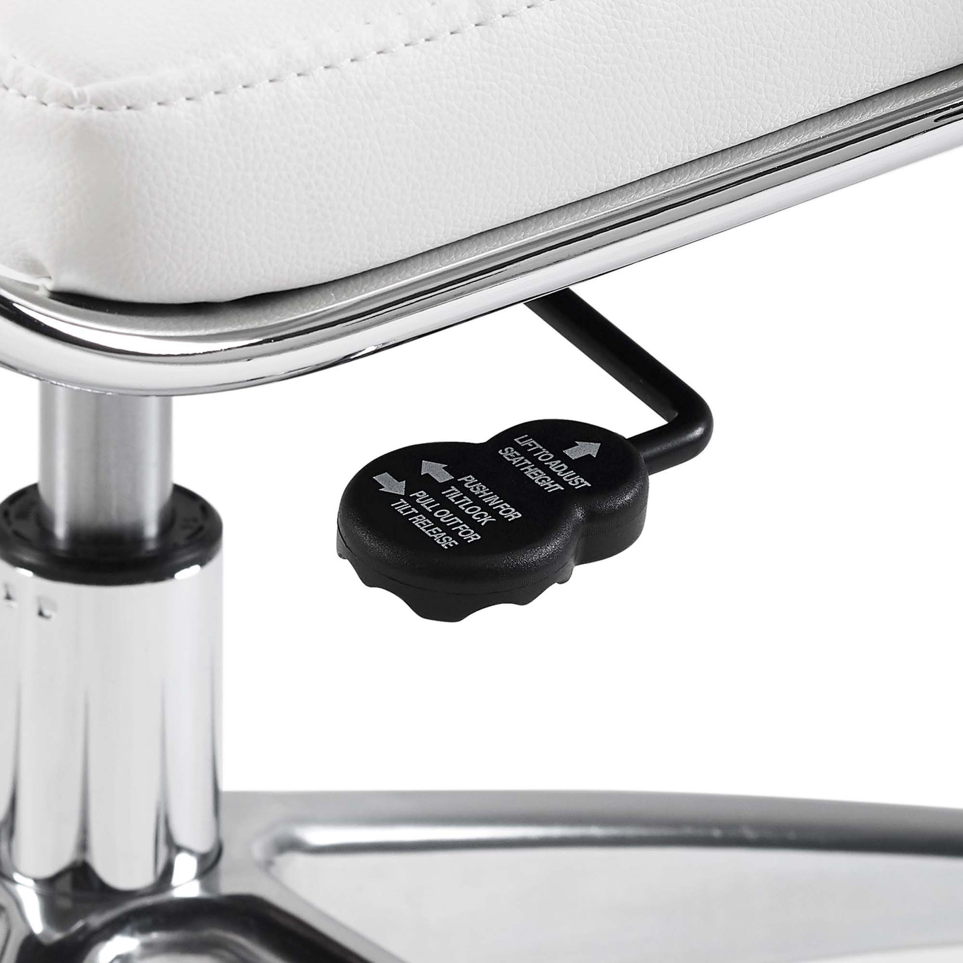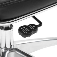 Steer the course and sail to an island called style. Jive is the result of chair makers who decided to design a chair that just works. Functionally, it is a pleasure to sit in as the durable ribbed vinyl back provides natural posture support. The seat cushion and arms are padded, while the form of the armrests was intended to maximize a 90-degree wrist angling for typing. Jive’s chrome-plated aluminum base is fitted with five dual-wheel casters, while a tension knob and tilt lock allow for easy back position adjustments. This is a chair made for the modern office and a welcome embodiment of the spirit of progress and determination.