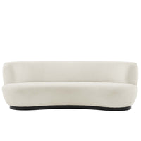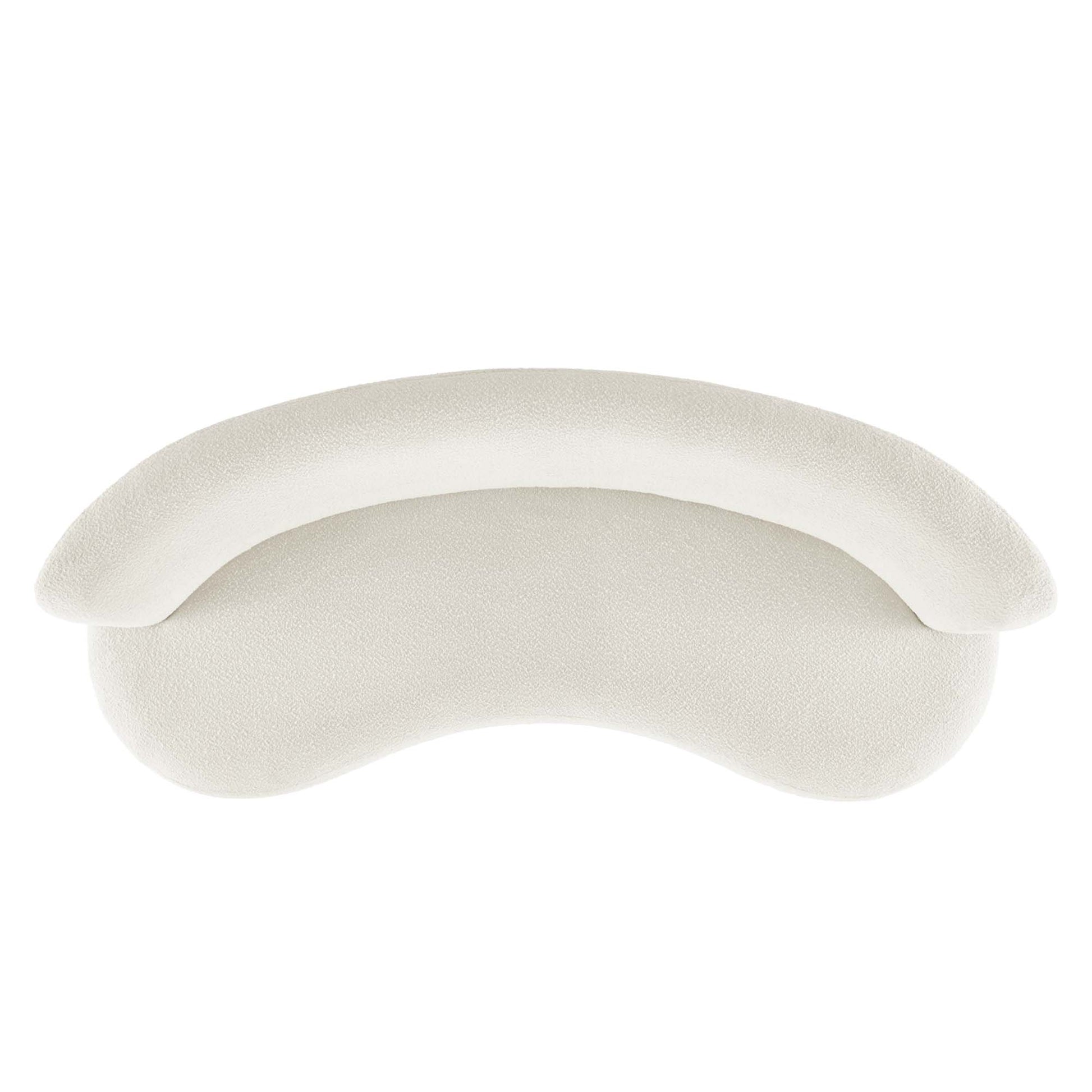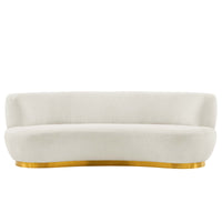 Invite on-trend style to your living space with the organic curves and nubby texture of the Kindred Boucle Upholstered Sofa. Covered in a beautiful boucle fabric made with looped yarns, this couch brings appreciated interest to a living room, office, bedroom, or lounge area. Dense foam padding and a webbed support system create a premium seating experience perfect for relaxing or enteraining. Resting on a brushed gold stainless steel base, this boucle sofa stuns in the modern home or apartment. Weight Capacity: 992 lbs.