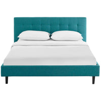 Inspire sweet dreams with the Linnea Platform Bed. Charmingly designed with grace and distinction, Linnea comes with an upholstered polyester fabric base and tufted headboard, solid wood legs, and a slatted wood support system that eliminates the need for a box spring. Complete with a reinforced center beam with supporting legs for maximal stability, Linnea accommodates the various mattress types on the market such as memory foam, spring, latex, and hybrid. Imparting a heartening chic-luxe look, Linnea is a well-made bed perfect for the instant update or bedroom transformation. Weight capacity up to 1300 lbs. Mattress Not Included.