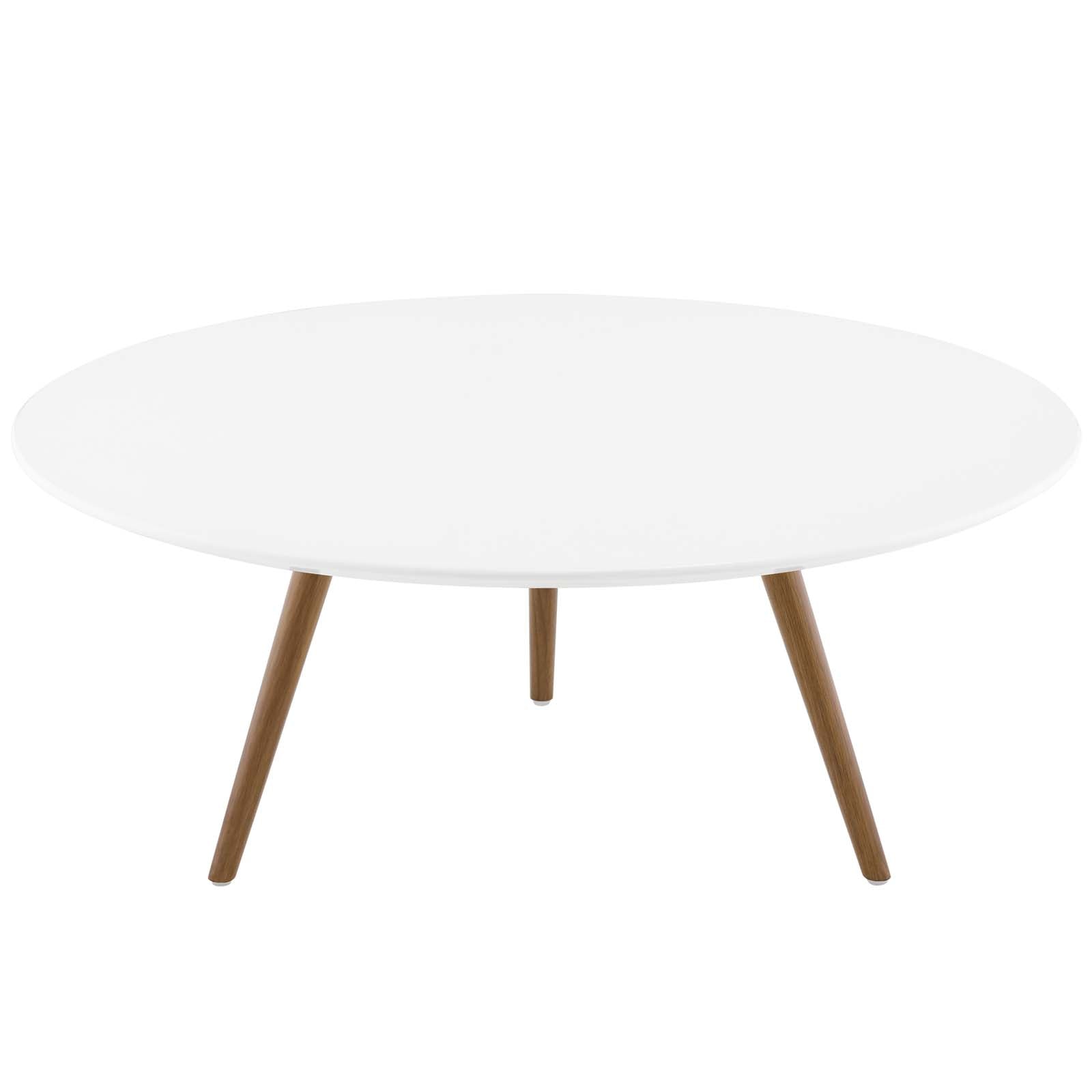 Reflecting a seamless organic shape and timeless form, the Lippa Table has become a symbol of modernism for over the past 60 years. Before its release, homes were filled with clunky remnants of an industrial age long gone by. But in order to advance into the new world, homes first had to transition from the traditional square table, into a piece that connoted progress. A twist on the original design, this coffee table features a round walnut veneer MDF table top lacquered with a scratch-resistant finish and tripod base with tapered walnut stained dowel legs. This rendition of Lippa is a coffee table that's perfect for the living room, lounge area, or home office.