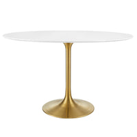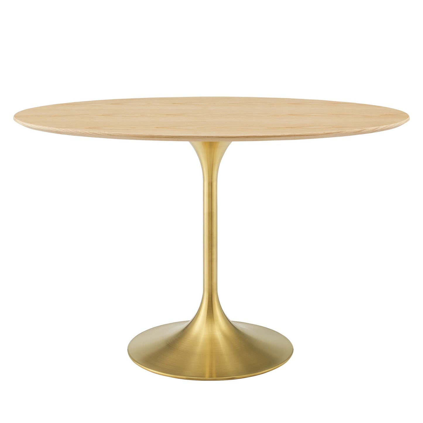 Let modern inspiration flow while gathered around the Lippa 48" Oval Dining Table. Perfect for entertaining family and friends or everyday dining, this pedestal table comfortably seats four. Its oval tabletop is crafted with MDF with a high gloss finish and beveled edge for a contemporary yet timeless design. Embodying an iconic mid-century silhouette, this pedestal dining table floats on a sleek tapered metal pedestal base with a chip-resistant brushed gold finish. Includes non-marking felt pad to protect flooring. Assembly required.