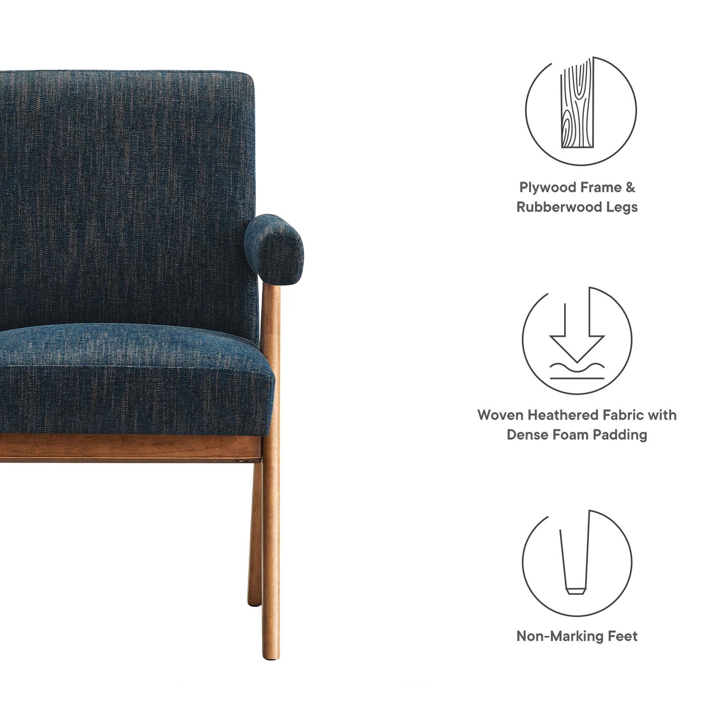 • "Plywood Frame, Rubber Wood Legs"
