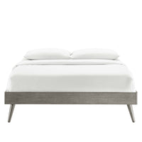 Incorporate modern style and comfortable sleep in the bedroom with the Margo Queen Platform Bed. Inspired by mid-century design, this queen size bed frame boasts retro detail with contemporary accents and organic aesthetics to bring trending modernity to your master bedroom or guest room. Adapting to any decor theme with the option of interchangeable headboards, this bed frame is compatible with the Robbie, Draper, Archie, and Collins headboard collections. This platform bed frame is a sturdy addition to the bedroom with a durable wood, MDF, and veneer construction and four splayed rubberwood legs. Eliminating the need for a box spring, this queen bed is complete with a wood slat support system, reinforced center beam, and supporting legs that make it a lasting mattress foundation for memory foam, latex, innerspring, and hybrid mattresses. Assembly required. Queen Bed Frame Weight Capacity: 601 lbs.