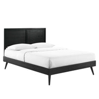 Incorporate modern style and comfortable sleep in your master bedroom or guest room with the retro detail and organic aesthetics of the Marlee Wood Full Platform Bed. Inspired by mid-century design, the full headboard of this wood bed features a beautiful window pane design that offers a traditional look. This platform bed frame is a sturdy addition to the bedroom with a durable wood, MDF, and veneer construction and splayed rubberwood legs. Eliminating the need for a box spring, this full bed is complete with a wood slat support system, reinforced center beam, and supporting legs that make it a lasting mattress foundation for memory foam, latex, innerspring, and hybrid mattresses. Assembly required. Full Bed Frame Weight Capacity: 601 lbs.