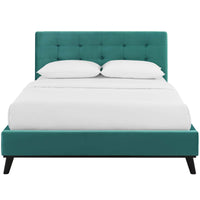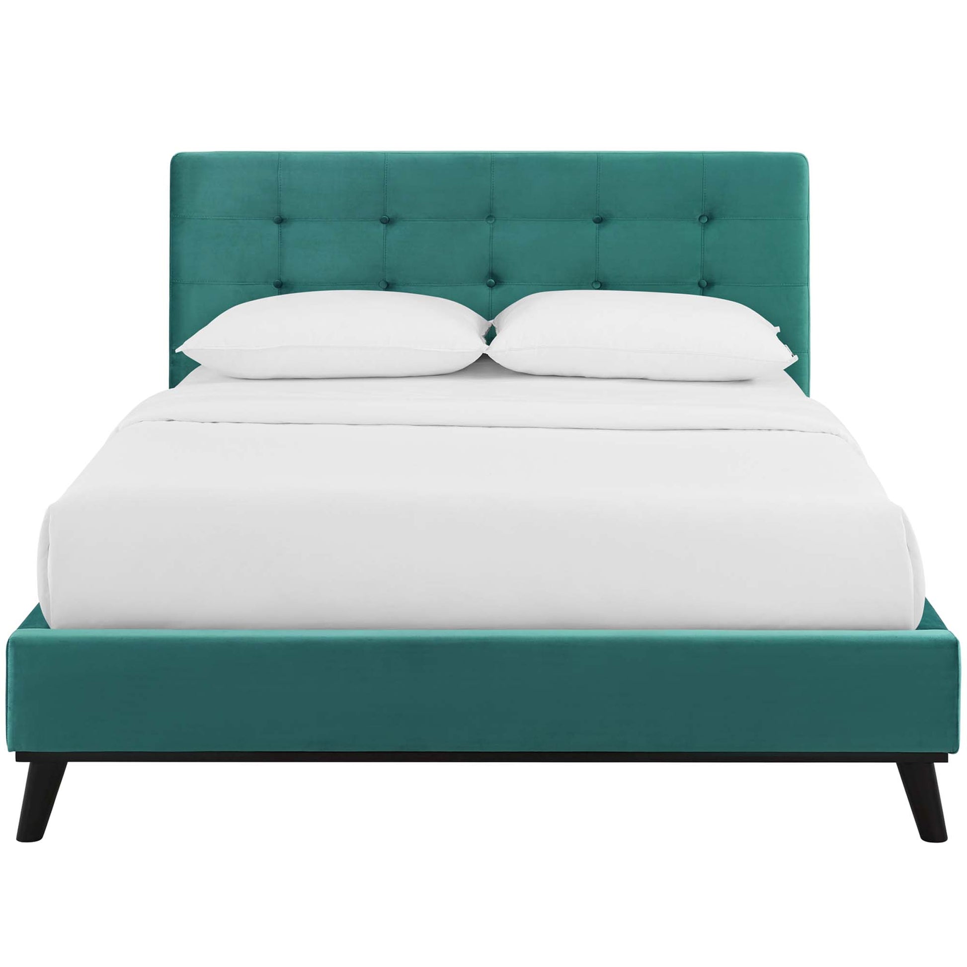 Comfort and luxury abound with the McKenzie Queen Platform Bed. Biscuit tufting adds effortless sophistication and mid-century charm to your master suite or guest room, while soft, stain-resistant performance velvet upholstery covers both the rubberwood frame and headboard for surround luxury. Solidly constructed, McKenzie comes with a wood slat support system that eliminates the need for a box spring. Positioned securely on four splayed legs, this durable queen platform bed provides comfort whether reclining, reading, conversing in bed. Ideal for farmhouse, rustic, or modern styled bedrooms, Gianna Queen Platform Bed features an elegant design perfect for your master suite or guest room. This supportive queen bed frame with a queen size headboard provides support for up to 800 lbs.
