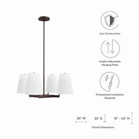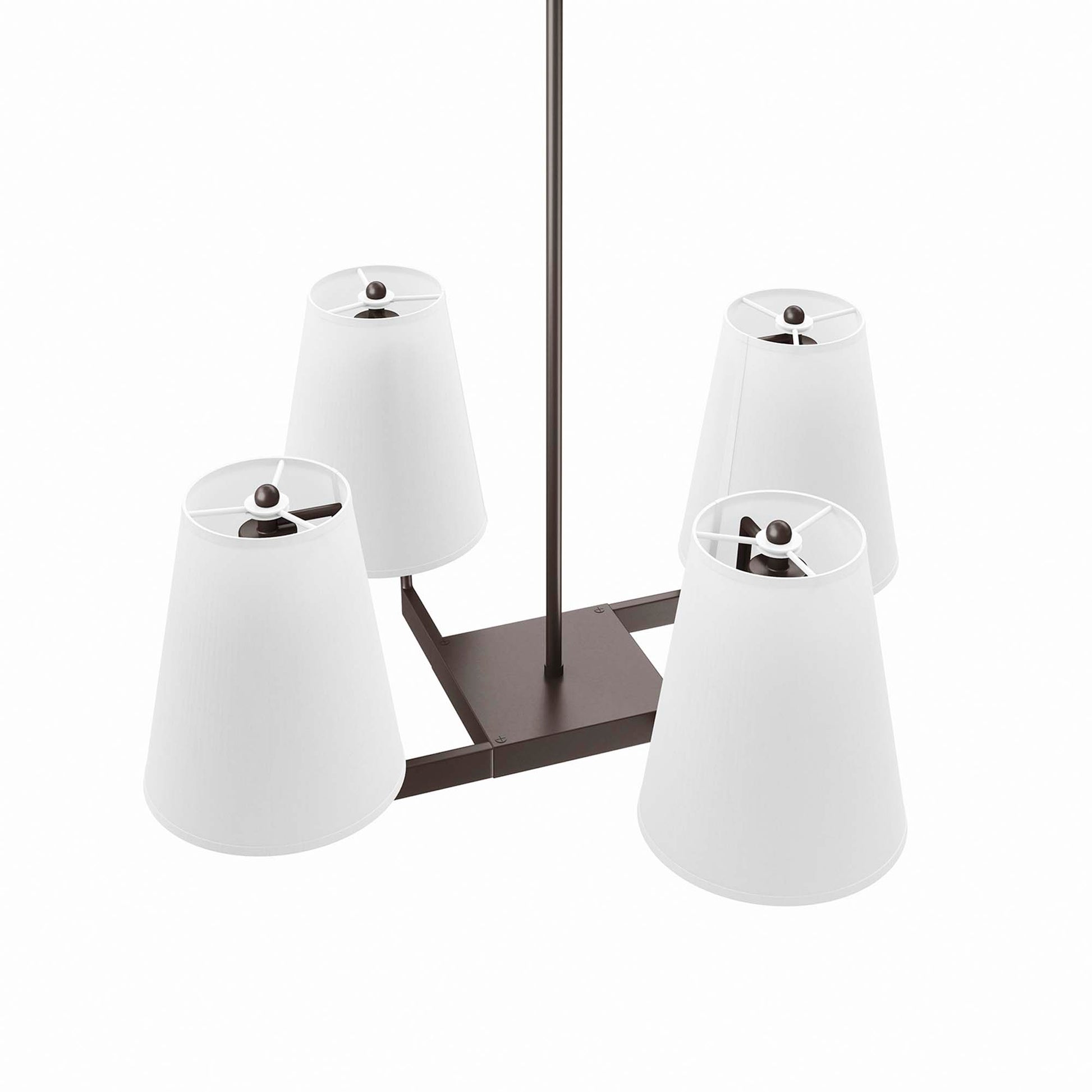 Set the stage for purposeful illumination with the Mercer 4-Light Pendant in your living room, dining room, bathroom, entryway, bedroom, or office space. Compatible with sloped ceilings, Mercer has a ceiling canopy with a swivel adaptor and features a five piece, height-adjustable hanging rod to suit a range of ceiling heights. Four fabric cone shades infuse the Mercer Pendant Light with modernism and contemporary style. This pendant light is ETL listed for damp locations like in the bathroom and requires four E26 bulbs 60W max or LED equivalent (not included). Luminaires that are “Suitable for Damp Locations” are approved for areas that are regularly exposed to moisture and condensation. Professional installation required.