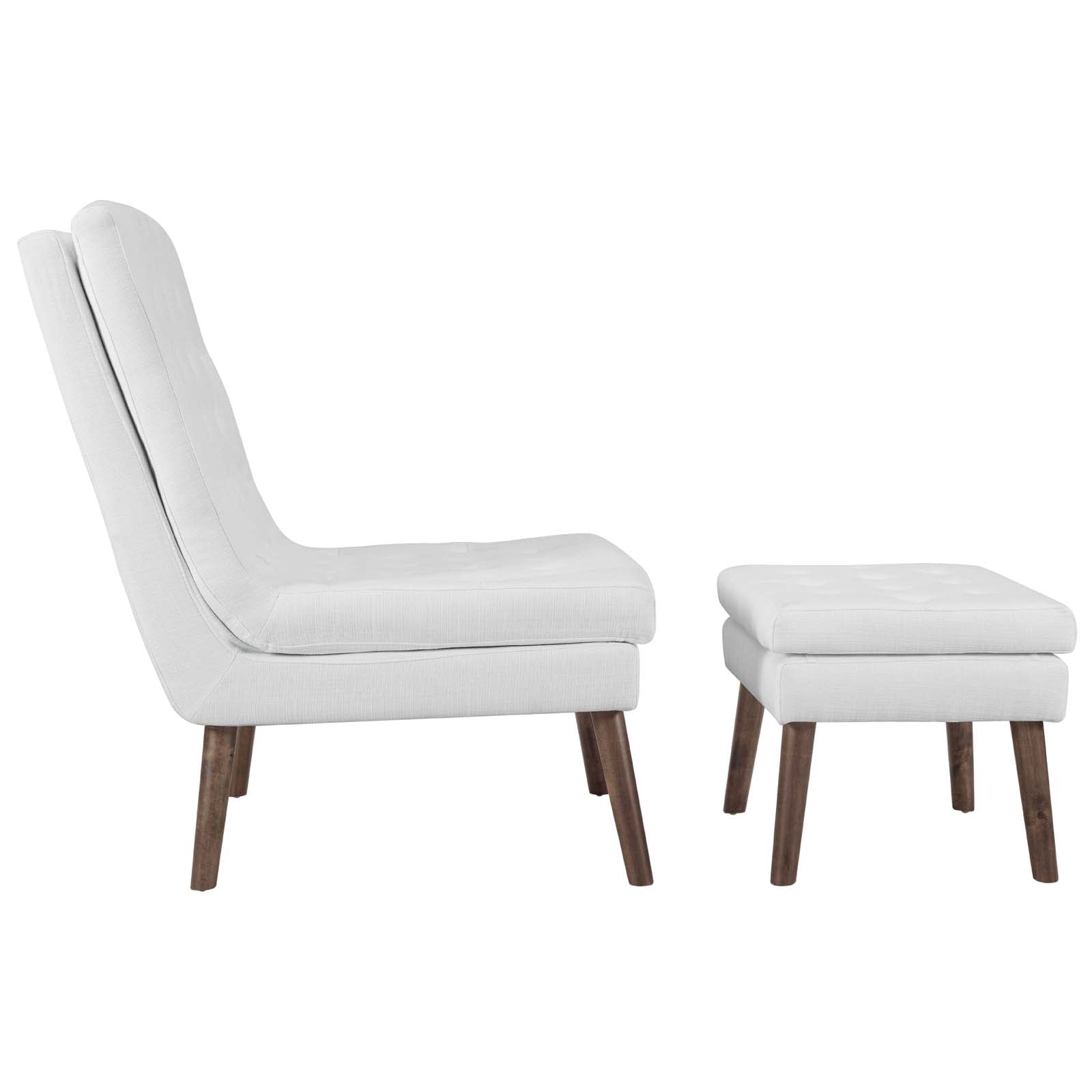 Experience relaxing leisure time while kicking up your feet on this generously padded modern lounge chair and ottoman set. Complete with high-density foam cushions, polyester upholstery with tufted buttons, and angled wood dowel legs with foot pads to help protect your flooring, Modify creates a clean-lined, open environment for your contemporary living room or lounge area. Modify supports up to 331 pounds.