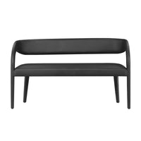 Experience the perfect blend of modern sophistication and luxurious comfort with the Pinnacle Vegan Leather Upholstered Accent Bench. Whether used as a dining bench or accent bench, its distinct silhouette showcases a curved backrest and an open design that effortlessly enhances your dining or living space with luxe style. This modern bench indulges your senses with its dense foam padding, upholstered in a smooth, quality vegan leather. Non-marking plastic foot pins ensure your flooring remains free from scuffs and scratches. With no assembly required, this bench offers a stylish statement instantly. Weight Capacity: 330 lbs.