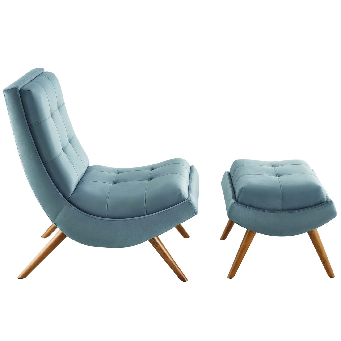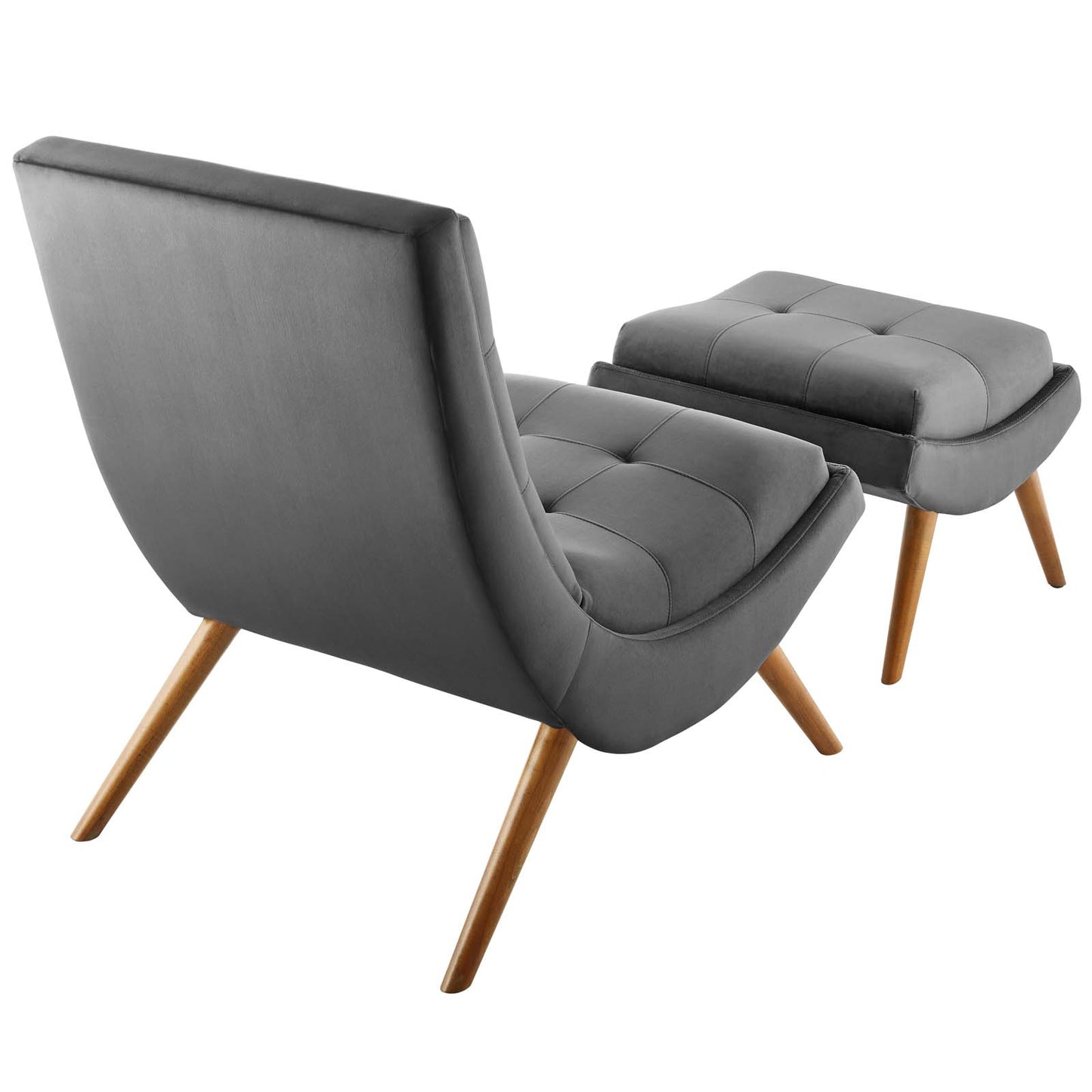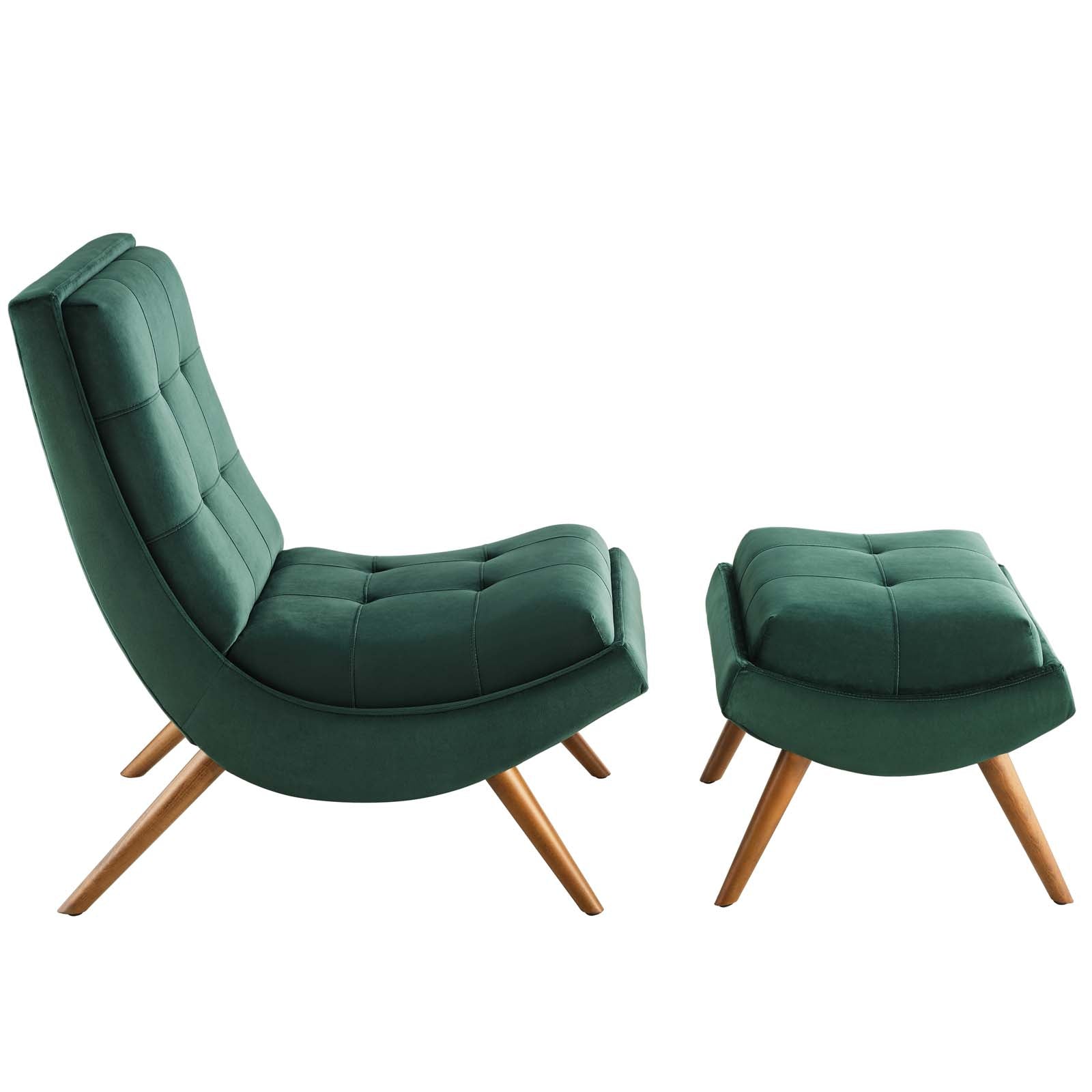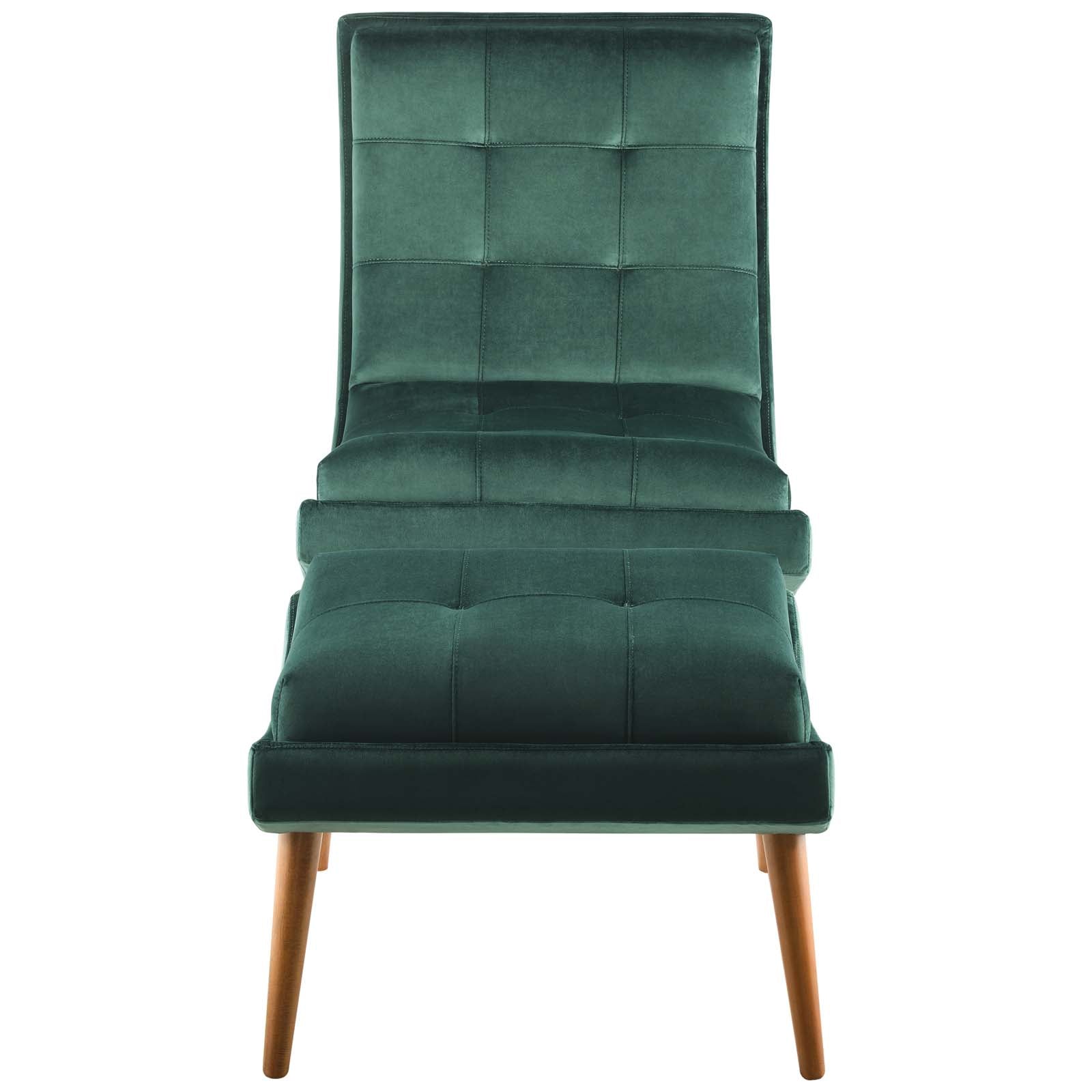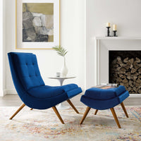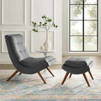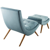 Ramp Upholstered Performance Velvet Lounge Chair and Ottoman Set