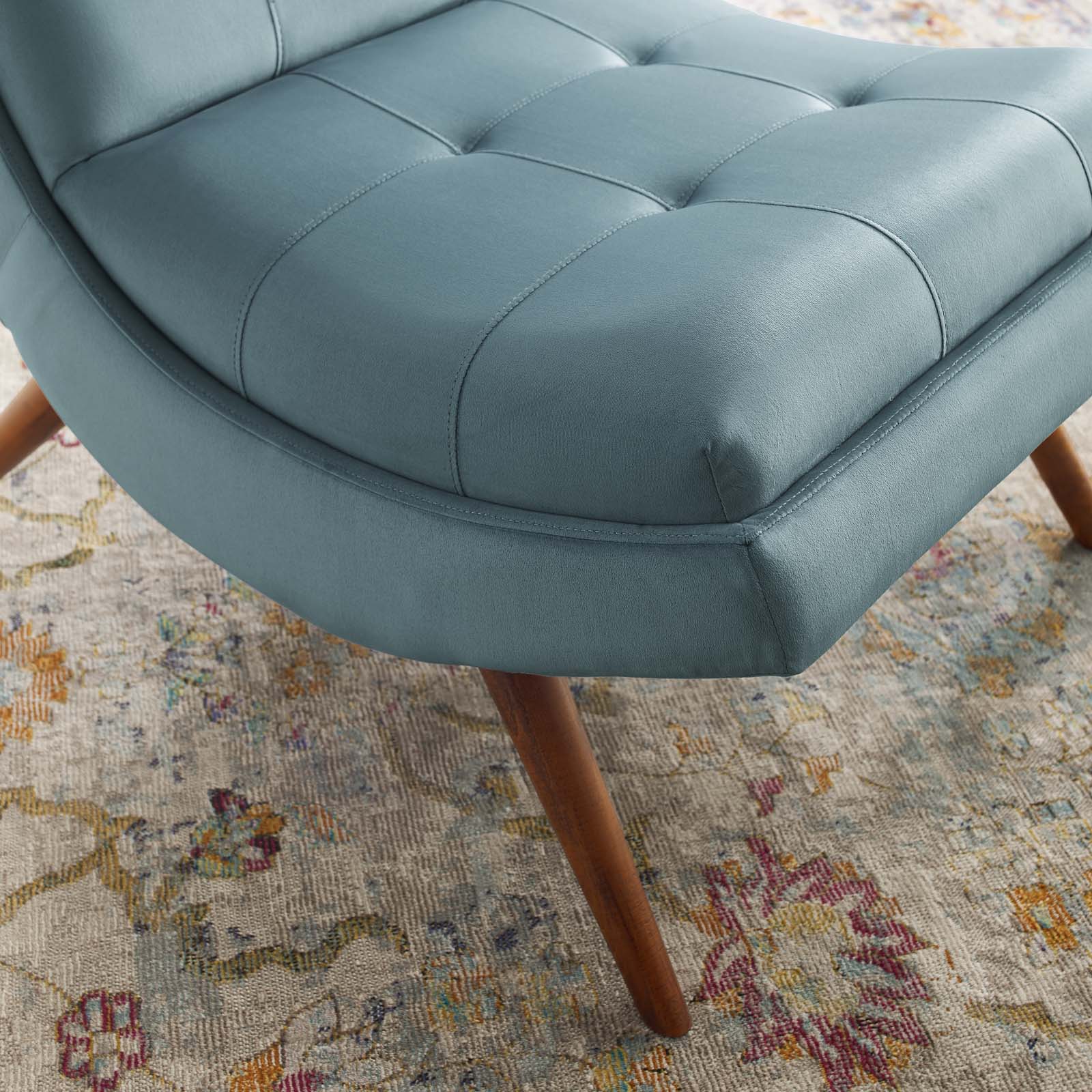 Allow yourself a time of complete relaxation. Ramp Performance Velvet Upholstered Lounge Chair and Ottoman set were designed to serve as a carefree and comfort-filled way to spend your leisure time. Relax as you find yourself luxuriating on Ramp’s soft, stain-resistant performance velvet upholstery that covers dense foam padding for support and restful opulence. Ramp’s durable and soft upholstery has eye-catching tufted button accents and splayed, cherry stained wood legs. Sturdily constructed from solid wood and plywood, the Ramp Performance Velvet Lounge Chair and Ottoman series is perfect for modern living rooms, lounge rooms, offices, or other seating areas.