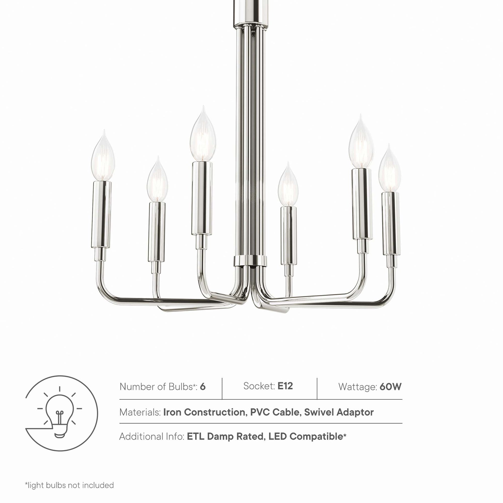 • Requires 6 E12 60W Lightbulbs (Not Included)