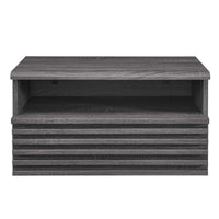 Tap into mid-century aesthetics with the Render Wall-Mounted Nightstand. Detailed with a slatted design, this nightstand features a durable particleboard frame with smooth wood grain laminate and a full-extension glide storage drawer. Boasting a mid-century modern style, this bedside table features a solid construction with a pleasing look and practical functionality that's perfect for the bedroom. A full-extension drawer offers ample storage space to keep your bedside essentials neat and organized. Assembly required.