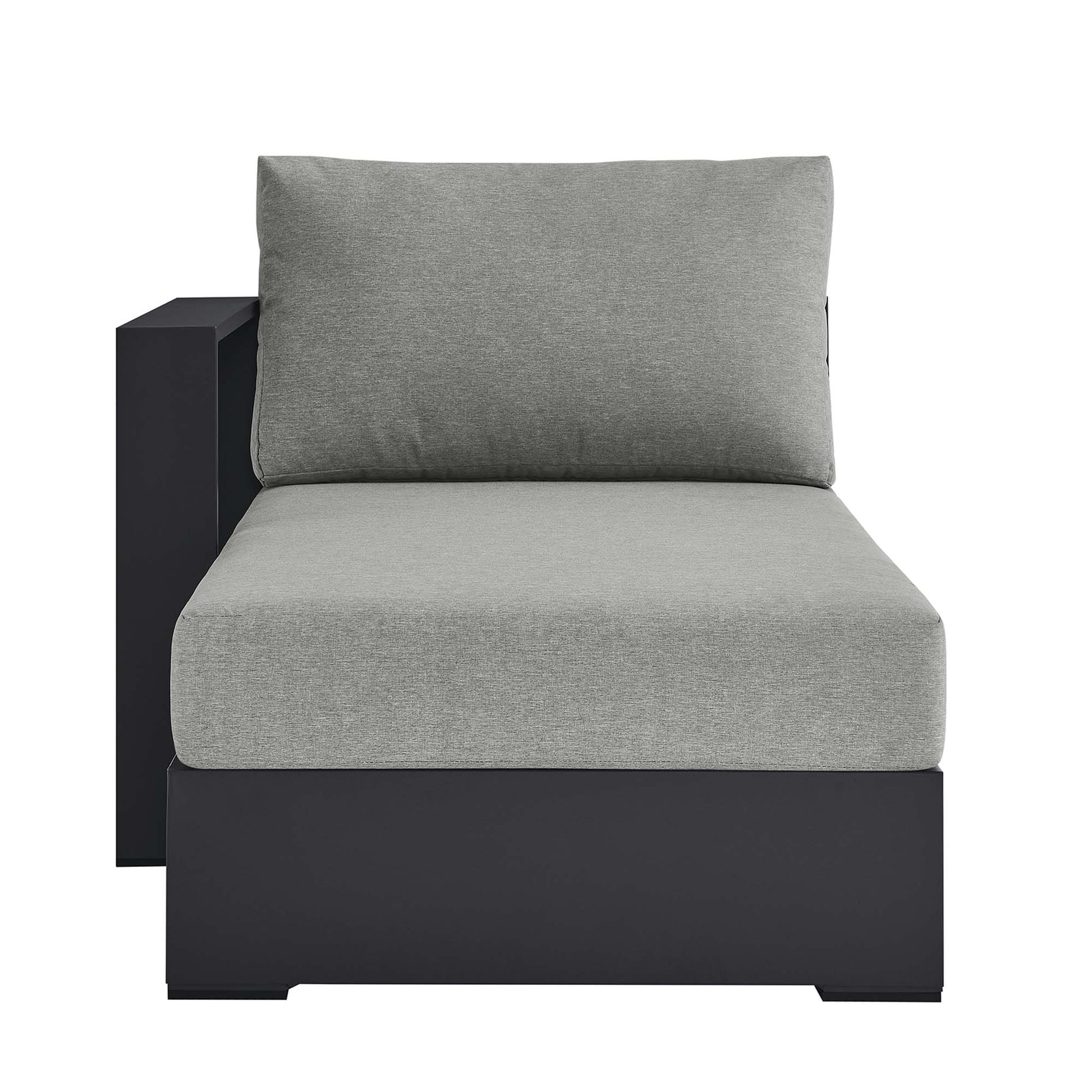 Enliven your alfresco spaces with the Tahoe Aluminum Outdoor Patio Left-Facing Chaise Lounge. This modern lounge chair is constructed with well-crafted, durable powder-coated aluminum, dispensing contemporary elegance in your outdoor lounge spaces. Its dense foam padding ensures sustained comfort, making it ideal for poolside lounging or as an outdoor patio sunbed, complete with a UV and water-resistant fabric-covered seat and backrest. The cushion covers are removable for easy machine washing. Part of a modular outdoor furniture collection, this left-facing sofa chair features a sturdy armrest on one side and an open end on the other, making it ideal for pairing with its matching sectional piece or versatile positioning with other outdoor furniture. The entire Tahoe aluminum patio furniture set features non-marking foot glides to protect your deck or patio floor and comes with easy-to-follow assembly instructions. Weight Capacity: 661 lbs.