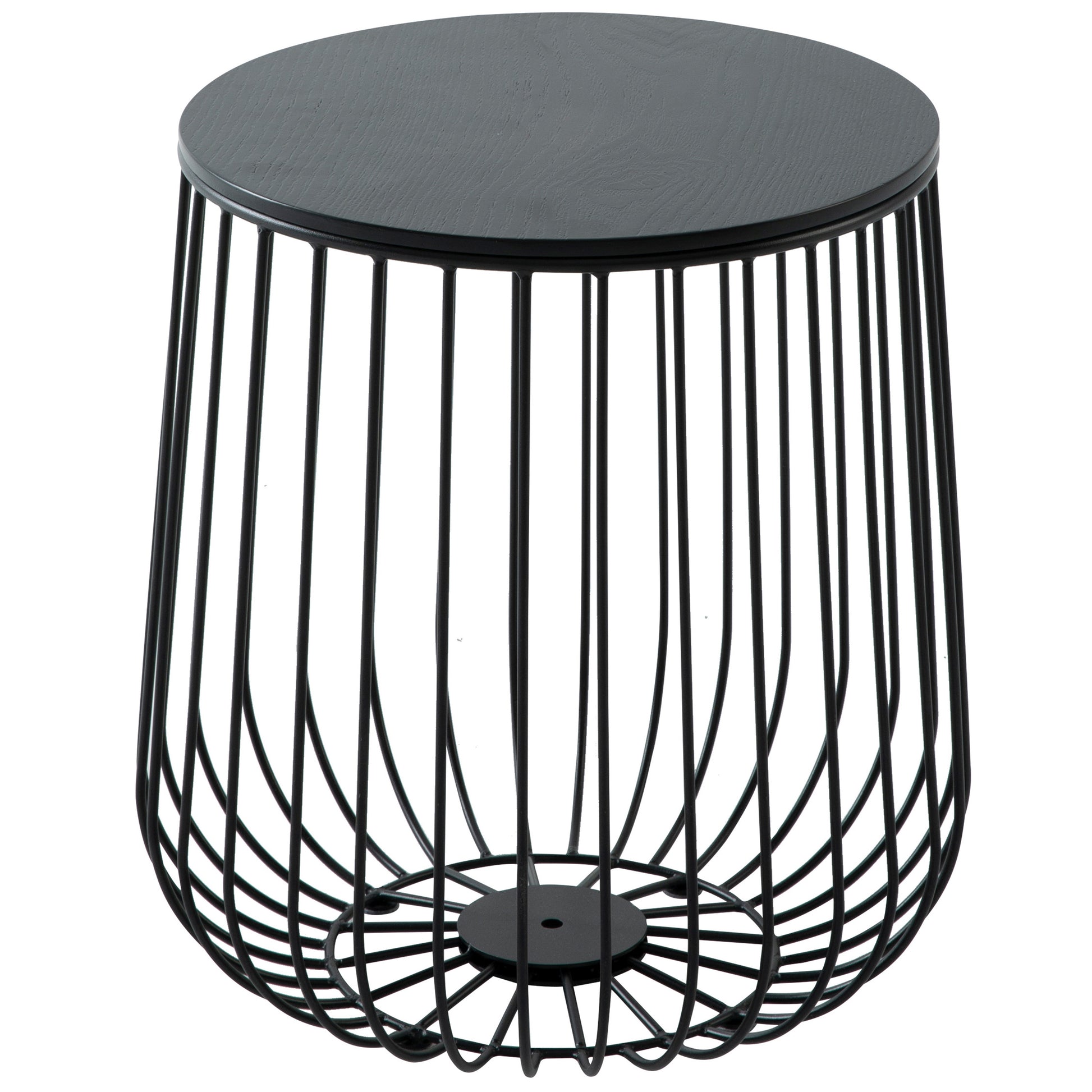 Let your love of cool, mid-century style take shape with this striking Runswick round-end table. This stylish modern circular side table is designed to transform your living space for a more comfortable and relaxing time, bringing elegance to your home and a sophisticated look to any setting. The round end table is crafted with a durable laminate board top and has a natural wood grain color variation that adds a touch of luxury and beauty to the piece and a texture to the design, it has a wire frame that is made from high-quality and durable steel with a powder coated finish designed to last a long time. Its round shape makes it ideal for corner spaces and the drum base type gives the end table a unique look and is perfect for those who need extra storage space the top comes off thus you can store your things inside, and the lightweight construction makes it easy to move from one room to another. The side table's surface is smooth for easy cleaning and maintenance. Best of all, no assembly is required so you can start using the round end table right away.