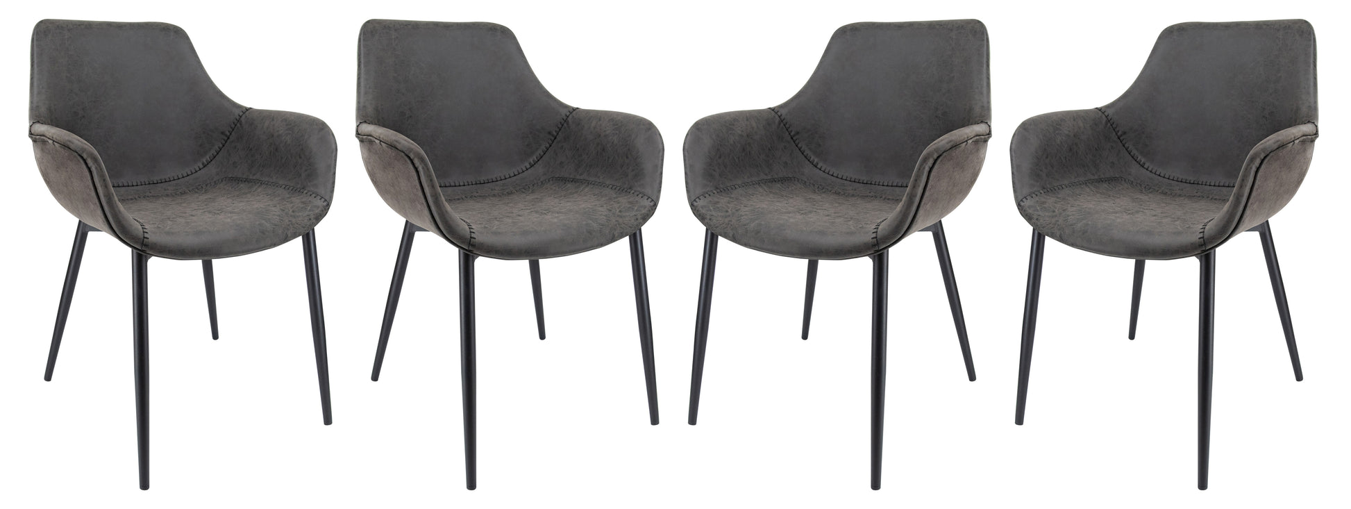 Markley Modern Leather Dining Arm Chair With Metal Legs Set of 4