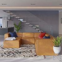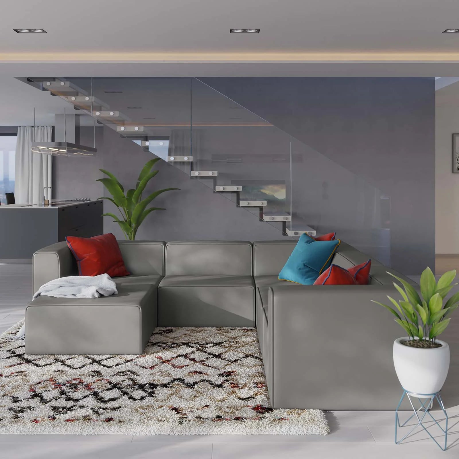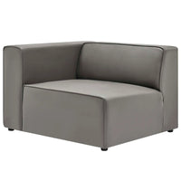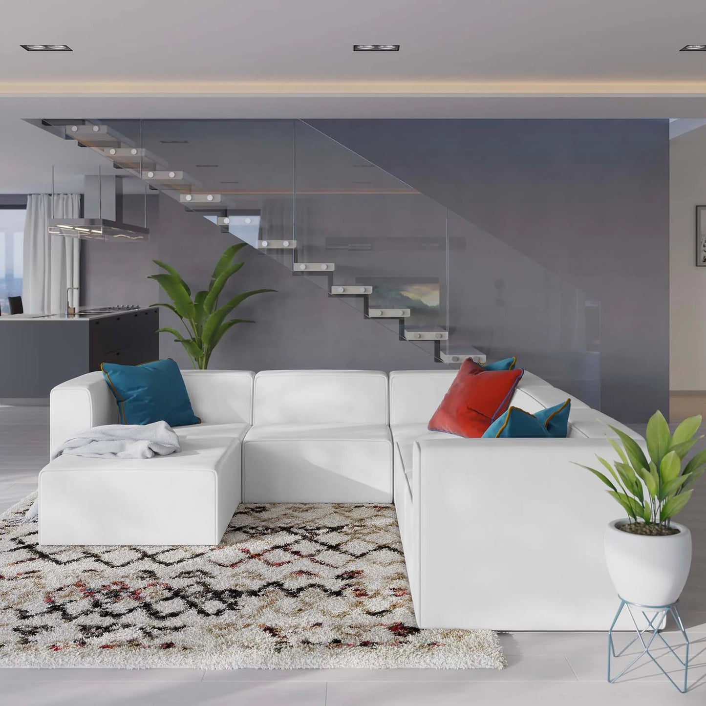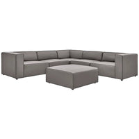 • Kick back and relax with the Mingle Vegan Leather 6-Piece Furniture Set. Designed to wash away the hindrances that obstruct visual space, this living room furniture set comes expansively designed with generous seating and dense foam padding that allows for just the right amount of giving. Mingle easily positions according to the needs of the moment and features rich vegan leather upholstery with elegant piping and plastic legs for steady support. Host animated living or lounge room get-togethers with a modular sectional sofa seating assortment perfect for contemporary modern décors. Set Includes: Left-Arm Chair, Right-Arm Chair, Corner Chair, 2 Armless Chairs, 1 Ottoman, 1 Armchair