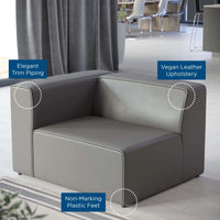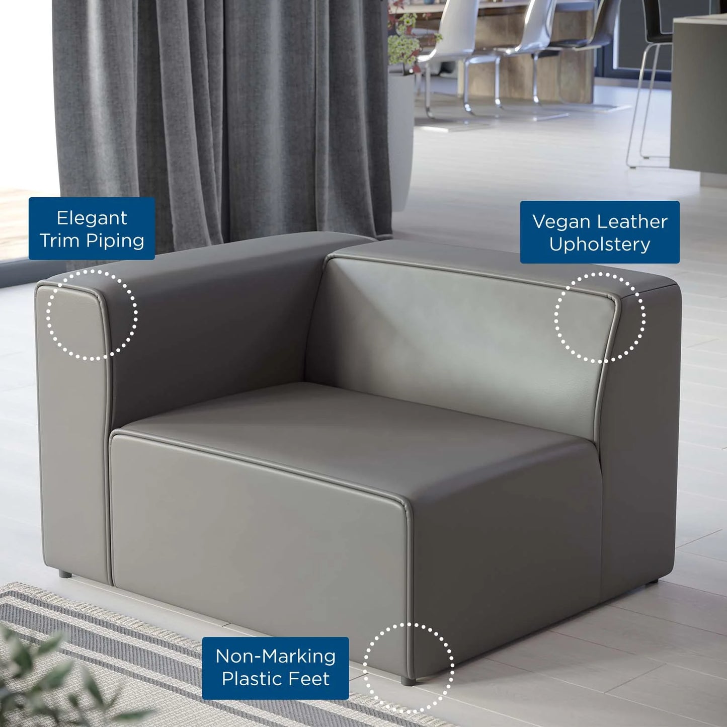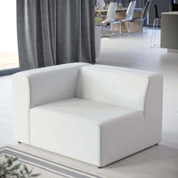 • Kick back and relax with the Mingle Vegan Leather Left-Arm Chair. Designed to wash away the hindrances that obstruct visual space, Mingle comes expansively designed with generous seating and dense foam padding that allows for just the right amount of giving. Mingle easily positions according to the needs of the moment and features rich vegan leather upholstery with elegant piping and plastic legs for steady support. Host animated living or lounge room get-togethers with a modular sectional sofa seating assortment perfect for contemporary modern décors.