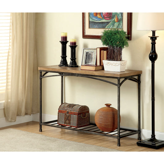 Suk Transitional Two Tone Sofa Table in Light Oak and Black