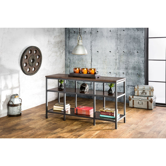 Bartoll Transitional Tiered Sofa Table in Dark Oak